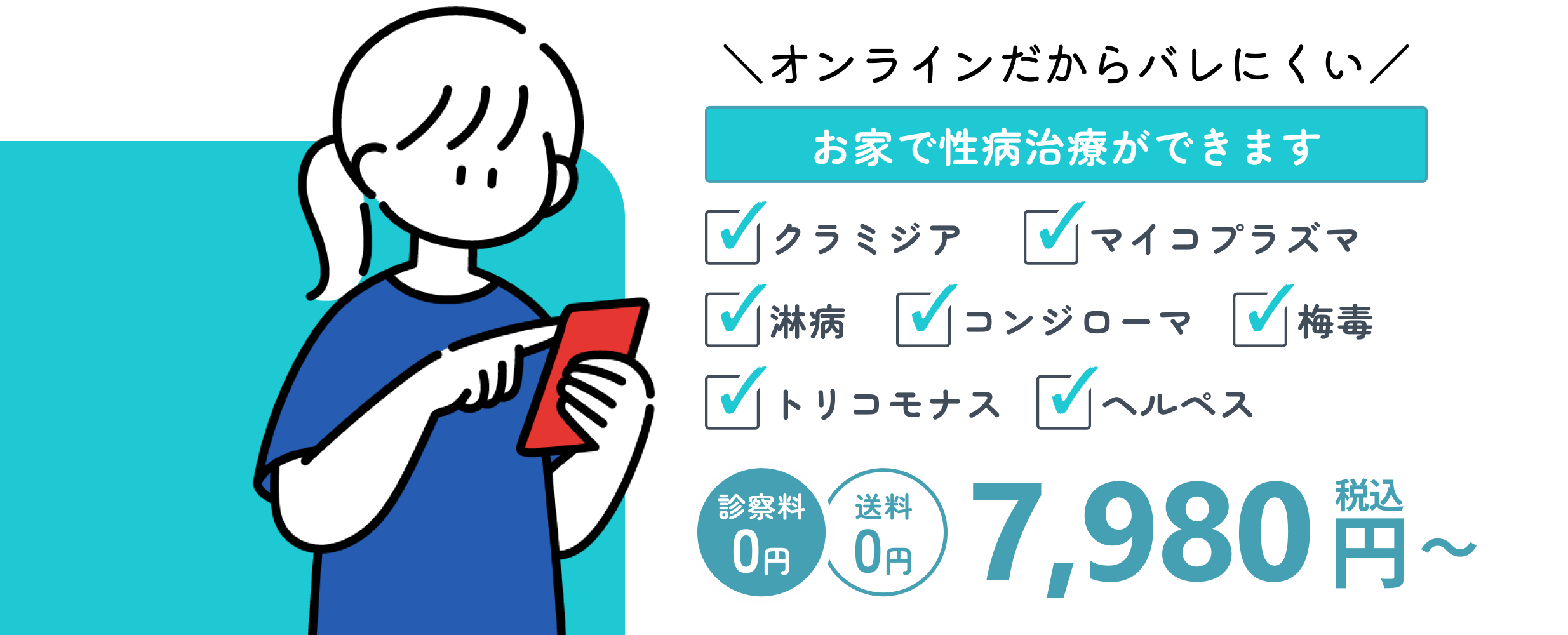 家から出なくても、性病治療ができます。性病検査から治療まで、全てオンラインで完結します。