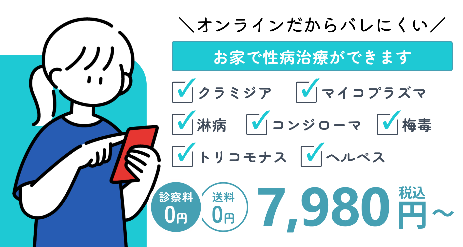 家から出なくても、性病治療ができます。性病検査から治療まで、全てオンラインで完結します。